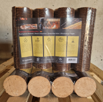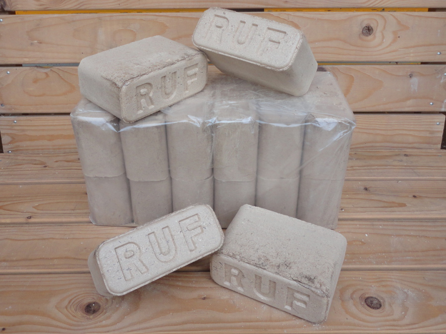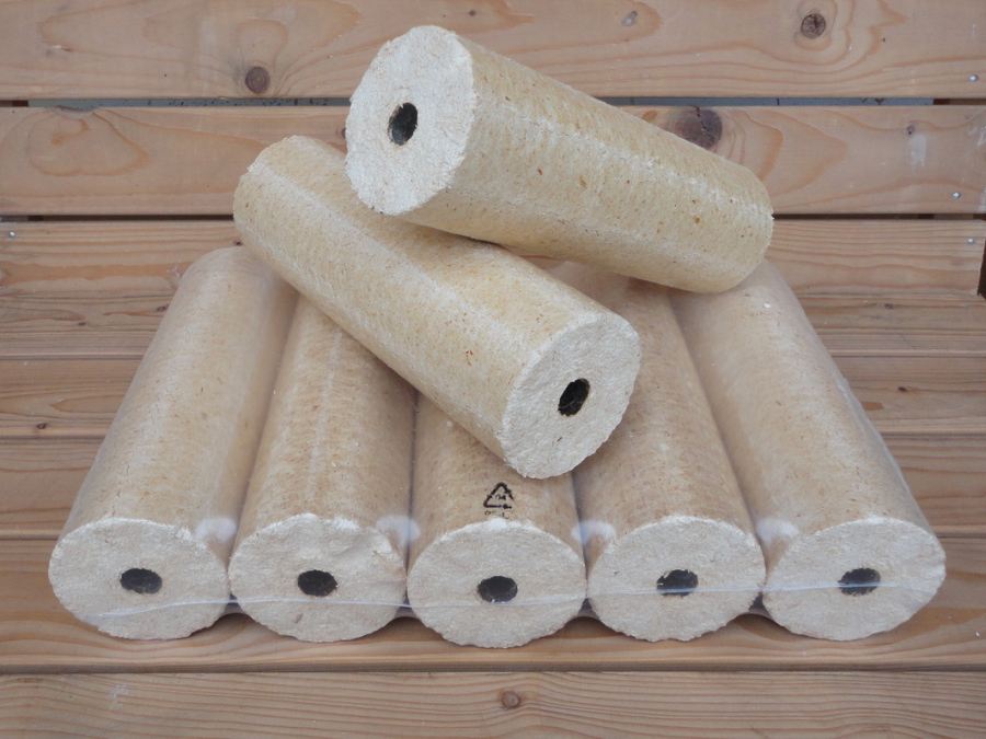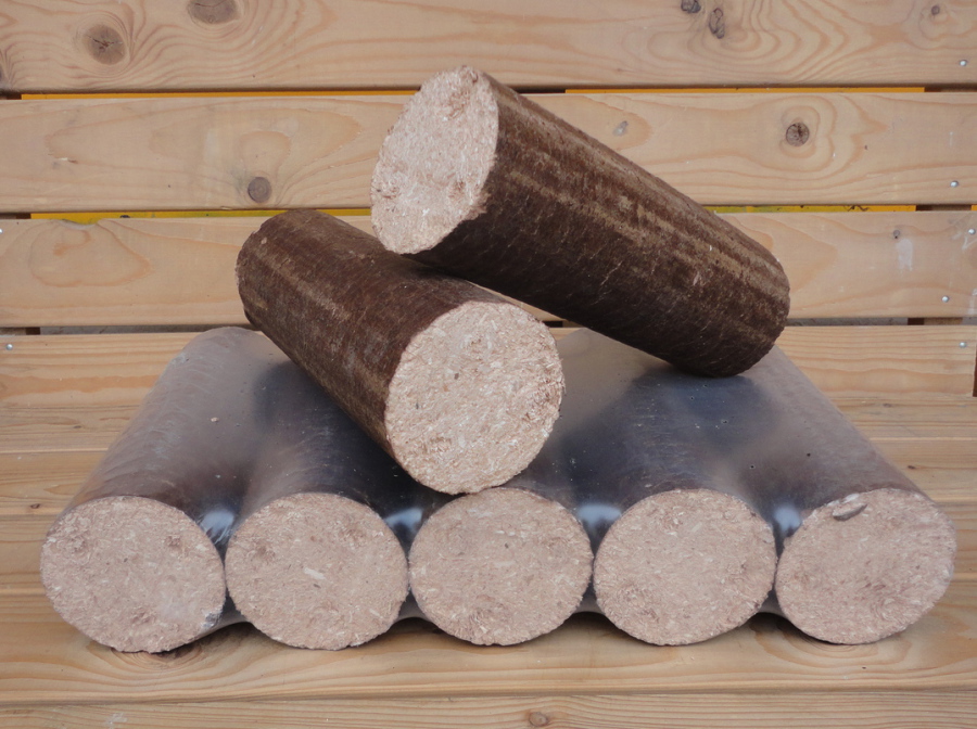 Holzbriketts werden aus trockenen, unbehandelten Holzresten, wie beispielsweise Hobelspäne, unter hohem Druck und ohne Zusatz von Bindemitteln zu gleichmäßig großen und harten Briketts gepresst.